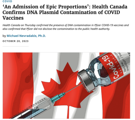 CHD’s The DefenderCanada: Health Canada Confirms DNA Contamination in Pfizer COVID-19 Vaccines