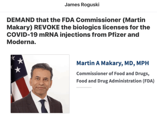 Following the Tribunal’s announcement, health-freedom advocate James Roguski issued a worldwide call to action, urging people everywhere to demand that the U.S. FDA revoke the biologics licenses for Pfizer and Moderna’s COVID-19 mRNA injections.