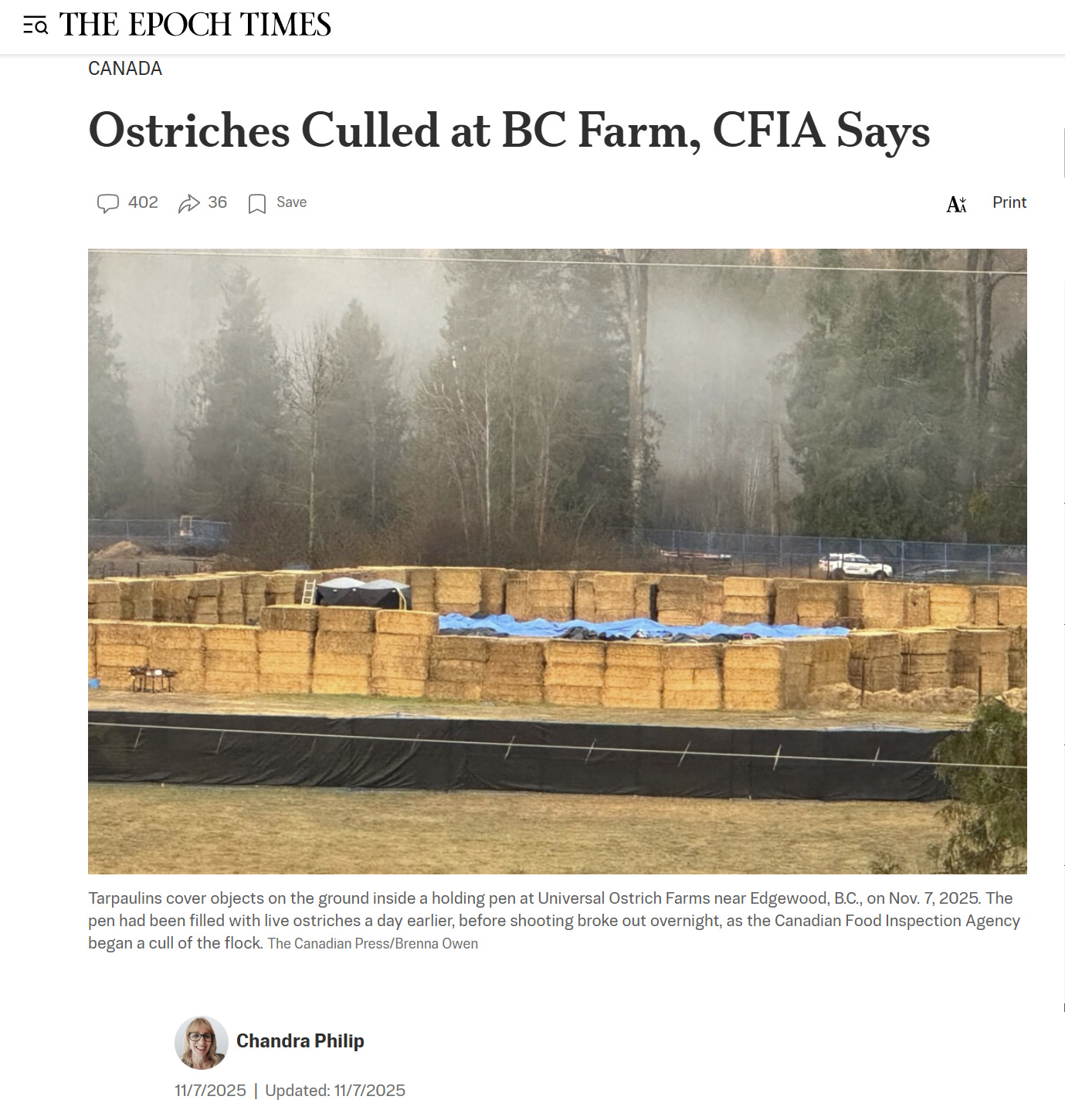 The ostriches that were just killed represented an opportunity for Canada to become a leader in managing avian influenza in a way that would genuinely reduce risk.