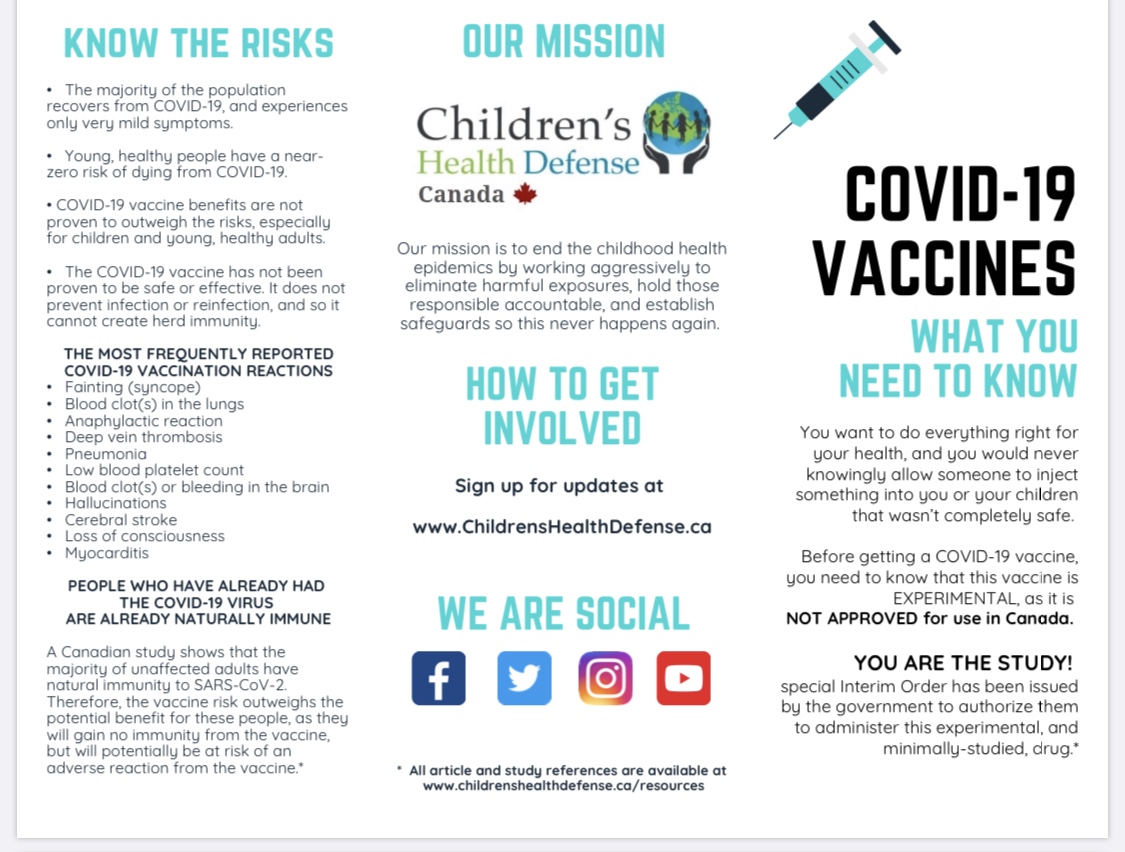 Pamphlet References: COVID-19 Vaccine: Privacy and COVID-19 Vaccine Passports - Office of the Privacy Commissioner of Canada Reibl v Hughes | CanLII Connects Interim Order Respecting the Importation, Sale and Advertising of Drugs for Use in Relation to COVID-19 - Canada.ca SO 1996, c 2, Sch A | Health Care Consent Act, 1996 | CanLII A majority of uninfected adults show preexisting antibody reactivity against SARS-CoV-2 - PubMed (nih.gov)